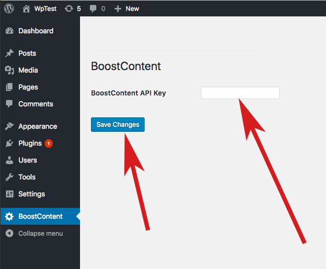 4. Copy and paste the BoostContent public API key from your API key settings page and press save.